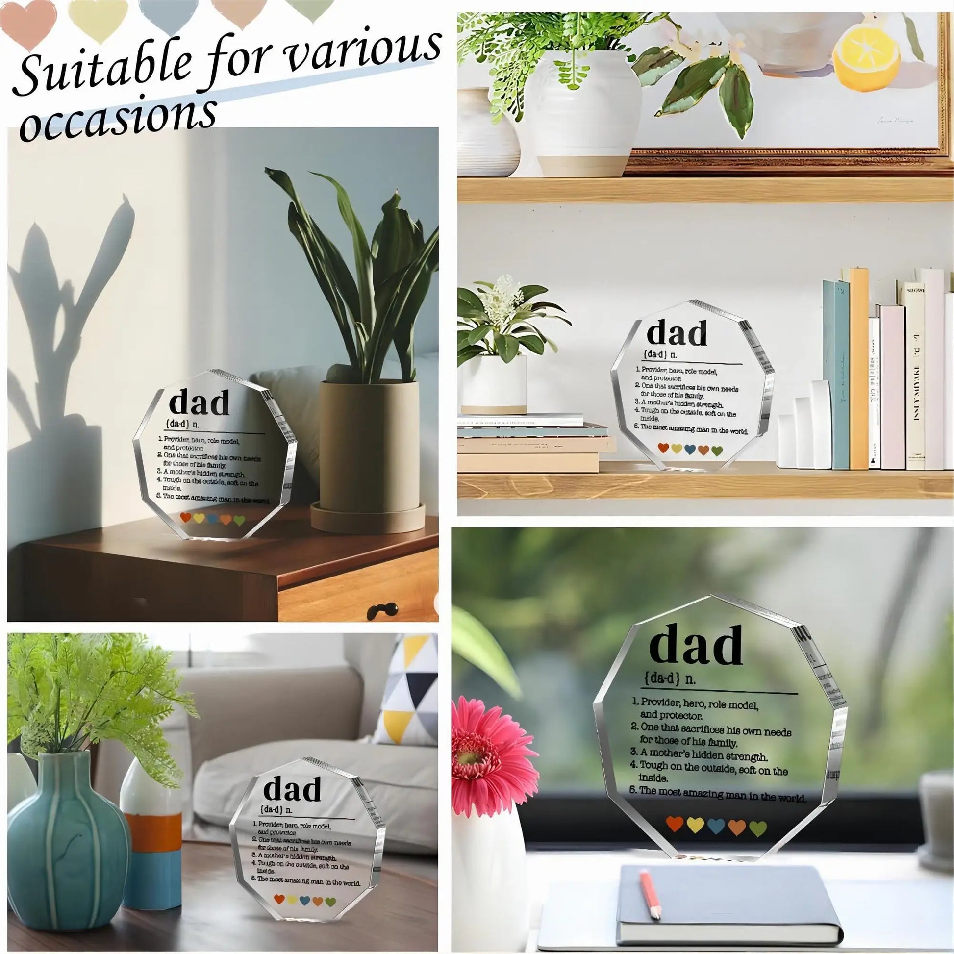 Celebrate Dad with this Best Dad Ever Acrylic Decorative Plaque, a heartfelt and stylish gift from a daughter, son, or wife. Perfect for Father’s Day, birthdays, Christmas, or any special occasion, this elegant plaque serves as a constant reminder of love and appreciation. Made from high-quality plastic, it is lightweight, durable, and designed for long-lasting display. Whether placed on a desk, shelf, or nightstand, this meaningful decoration adds a touch of warmth and gratitude to any space.