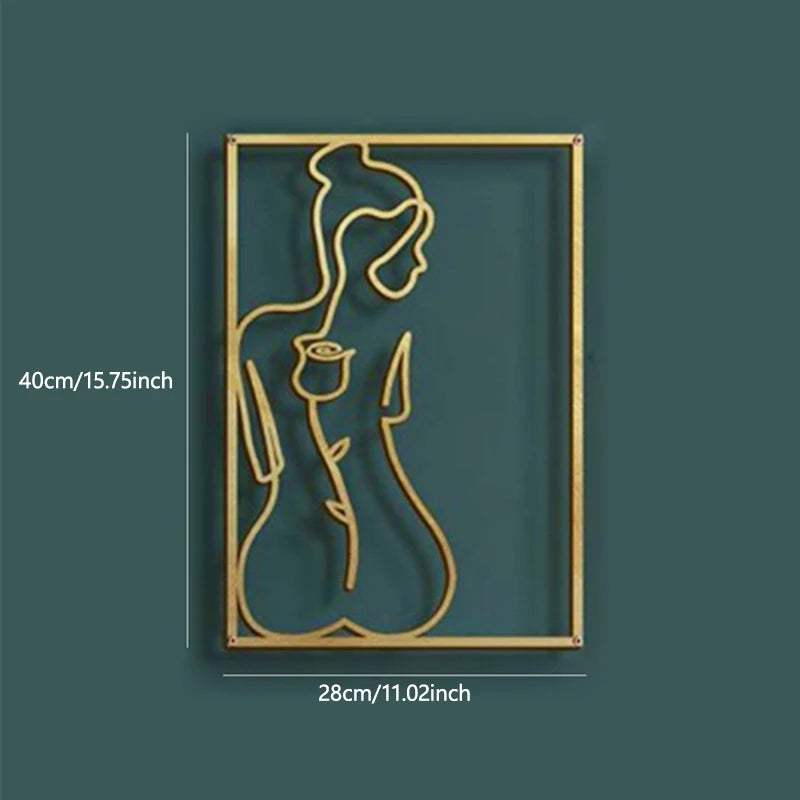 Enhance your space with this Nordic Abstract Female Line Metal Wall Art, a stunning silhouette design that adds elegance and modern style to any living room, bedroom, or office. Crafted from high-quality metal, this iron wall hanging ornament features a minimalist sexy woman silhouette, making it a bold and artistic statement piece. Its sleek and lightweight design allows for easy hanging, seamlessly blending into contemporary, abstract, or Nordic-inspired interiors.